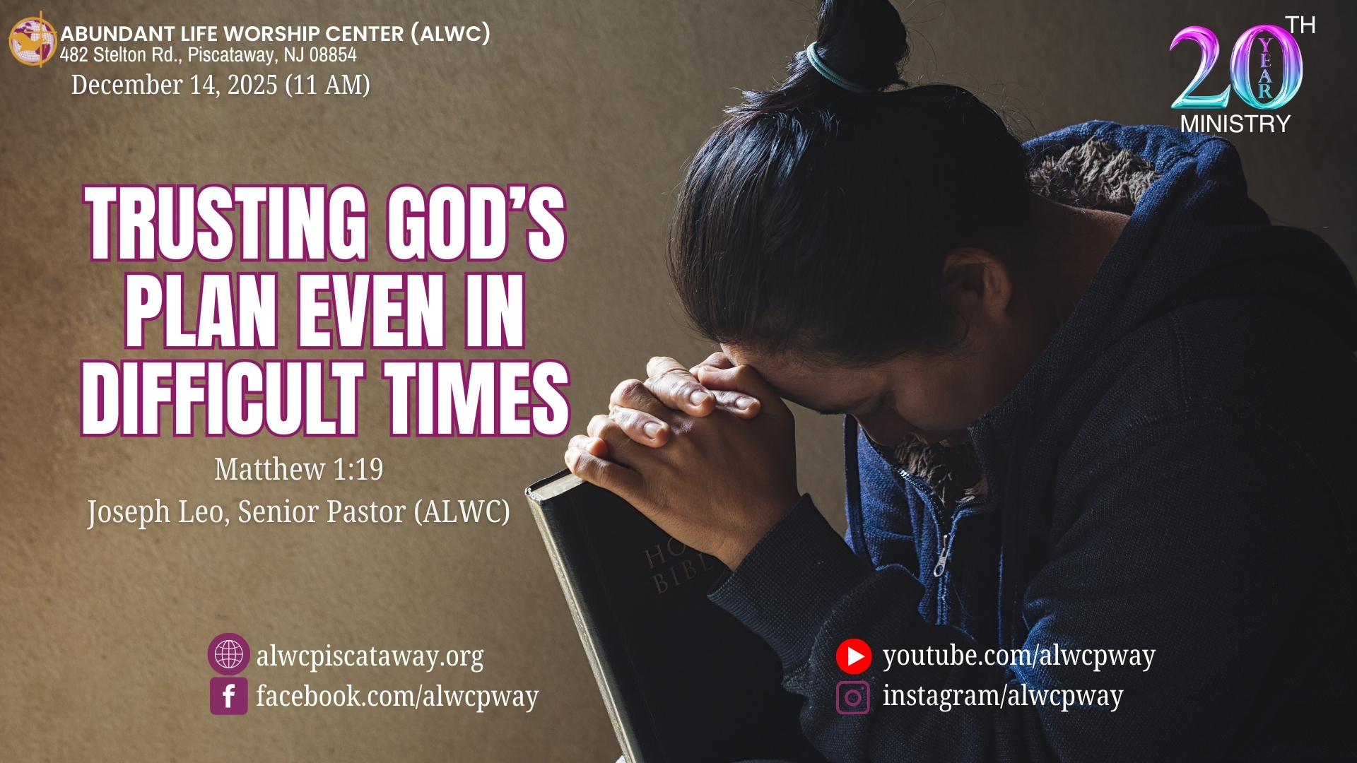 "Trusting God's Plan even in difficult times" (Mat. 1:19), Pastor Joseph Leo